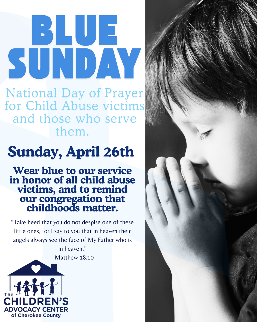 Blue Sunday is a national day of prayer for child abuse victims and those who serve them.